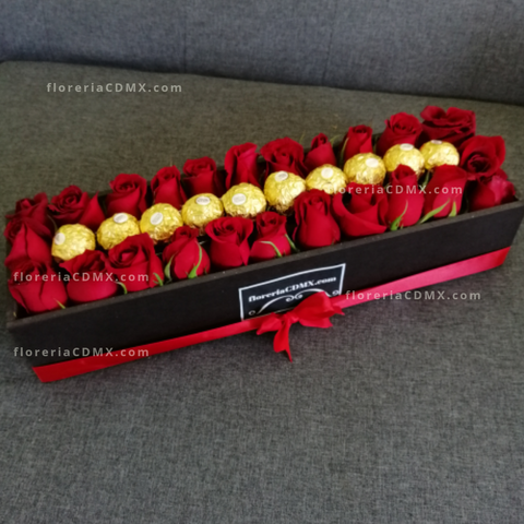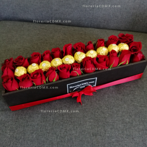 Caja de 24 rosas y 9 chocolates Ferrero